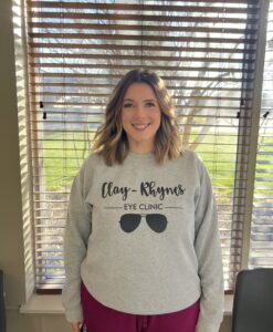 Brittany joined the doctors and staff of Clay-Rhynes Eye Clinic in September 2020. She serves as a laboratory assistant where she orders all our materials including glasses and contact lenses, edges lenses for glasses, and orders supplies.